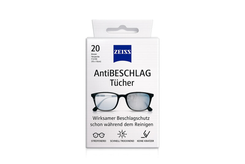 Влажные одноразовые салфетки ZEISS AntiFOG — это быстрое и эффективное решение против запотевания очков. Идеально подходят для ежедневного использования в холодное время года, при ношении маски или при резких перепадах температуры.