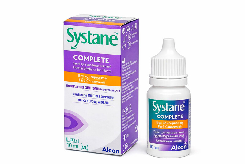 Systane Complete 10 мл — зволожувальні офтальмологічні краплі для щоденного комфорту очей, коли турбує сухість, подразнення або втома. Формула допомагає підтримувати природний зволожувальний шар і зменшувати неприємні відчуття протягом дня — під час роботи за комп’ютером, у приміщеннях із кондиціонером, у дорозі чи при несприятливій погоді.